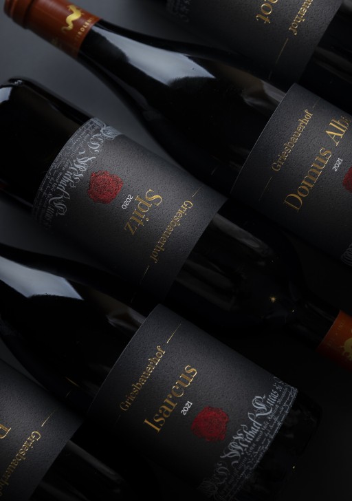 I nostri vini ci rispecchiano. Rappresentano ciò in cui crediamo, ciò che ci piace e ciò che ci stimola. Su ogni bottiglia abbiamo inciso, in rosso, il nostro stemma, simbolo della nostra passione, del nostro hobby e della nostra tradizione.