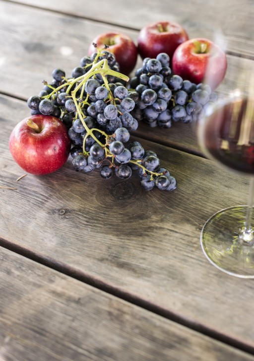 C’è un filo conduttore che si dipana attraverso tutta la tenuta: uva rossa, mele rosse, pomodori rossi. Tradizione, hobby e passione.